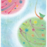 これ「水風船」って言いますか?それとも「ヨーヨー」?3色パステルアート『水風船』。桃青黄で描きました。